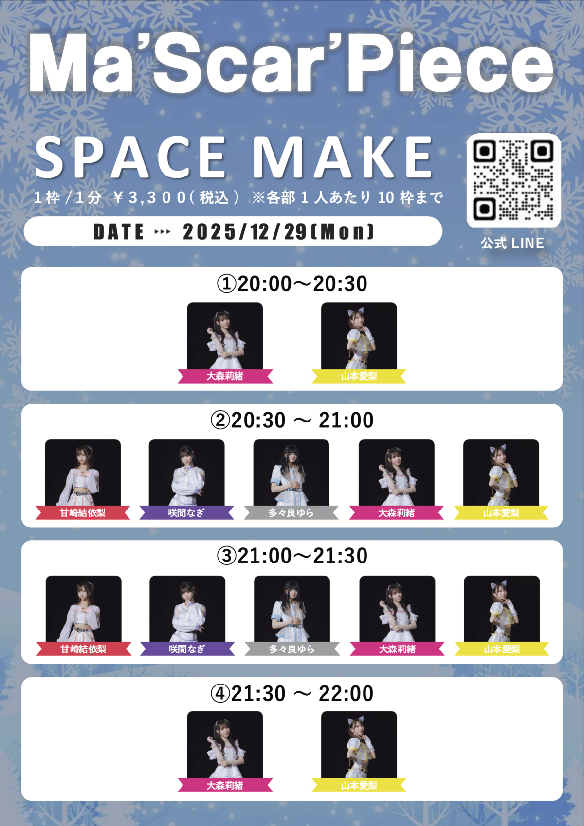 12月29日(月)に、1対1のコミュニケーションが実現するライブトーク(ビデオ通話)サービス「SPACE MAKE」にて