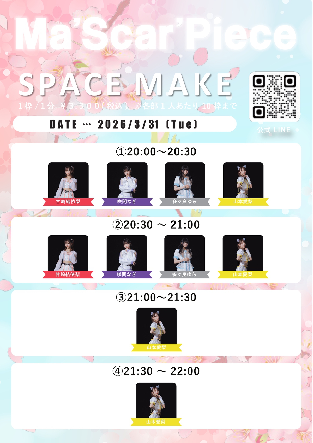 3月31日(火)に、1対1のコミュニケーションが実現するライブトーク(ビデオ通話)サービス「SPACE MAKE」にて