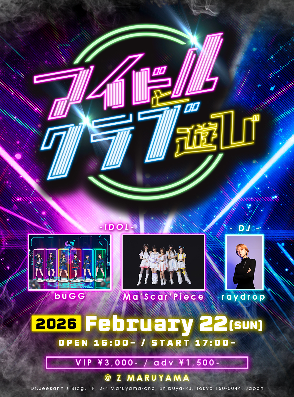2/22(日) buGG × Ma’Scar’Piece 「アイドルとクラブ遊び」開催決定